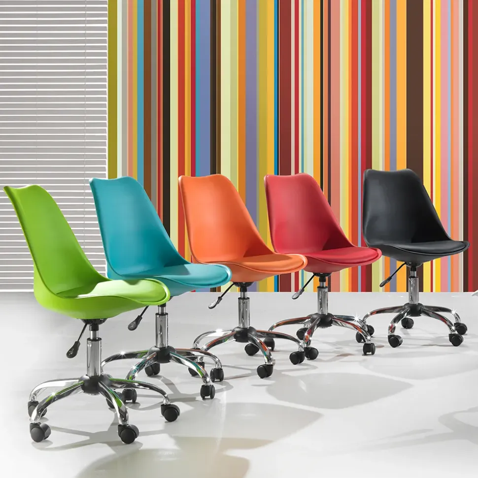 Tutti i Frutti di La Seggiola è una poltrona regolabile in altezza grazie al meccanismo a gas. La struttura è cromata, con struttura in polipropilene, disponibile nei colori: verde, turchese, arancio, rosso, nero, bianco, viola, giallo e grigio. Il cuscino è in tinta con il sedile.