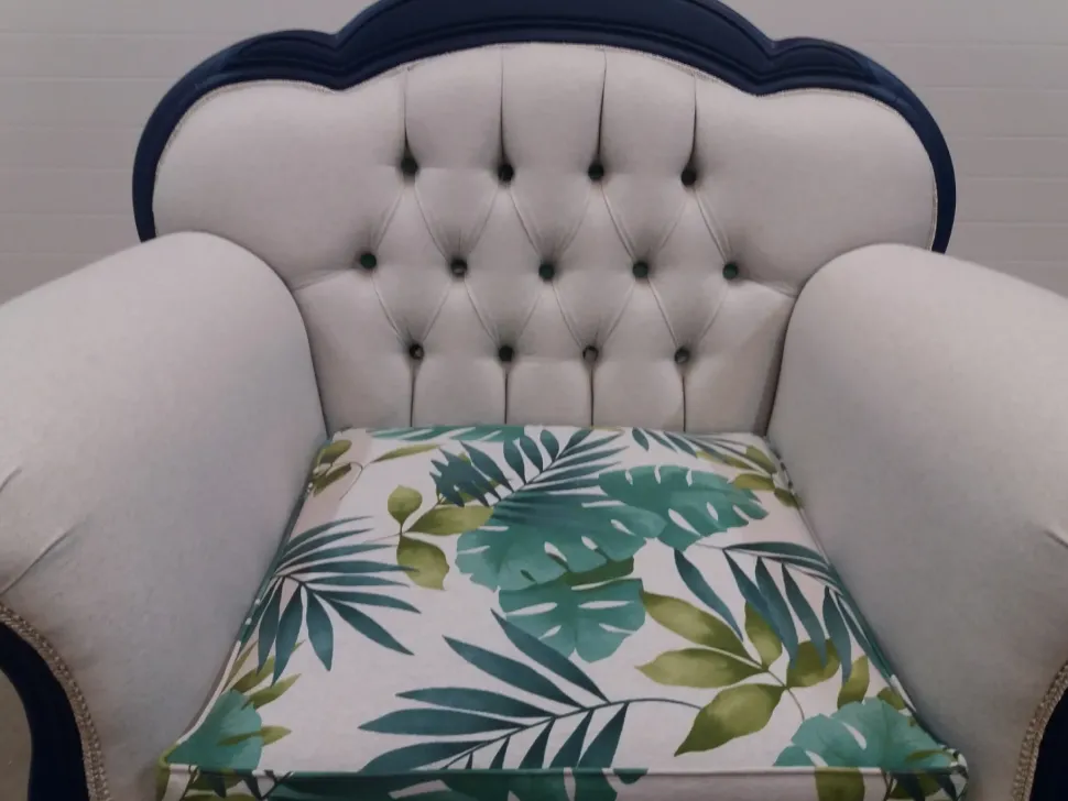 Poltrona originale con fantasia vintage , realizzata con materiali eco-sostenibili per una migliore cura e attenzione dell’ambiente combinato con un design attuale.