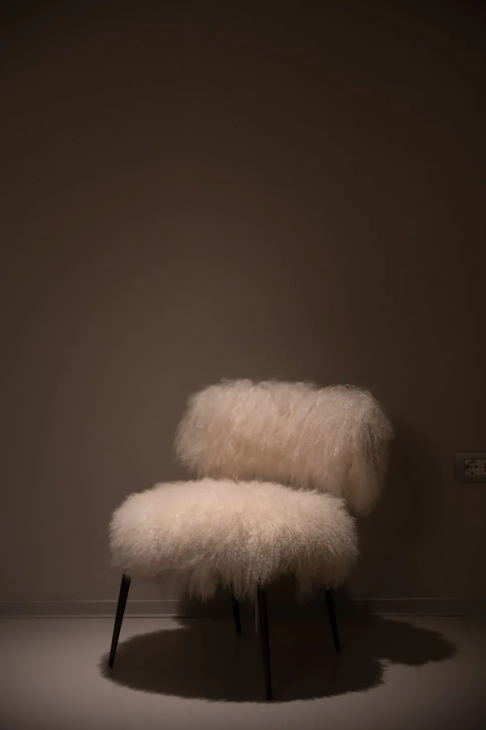 Poltroncina Nepal di Baxter con rivestimento seduta finitura mongolia bianco.