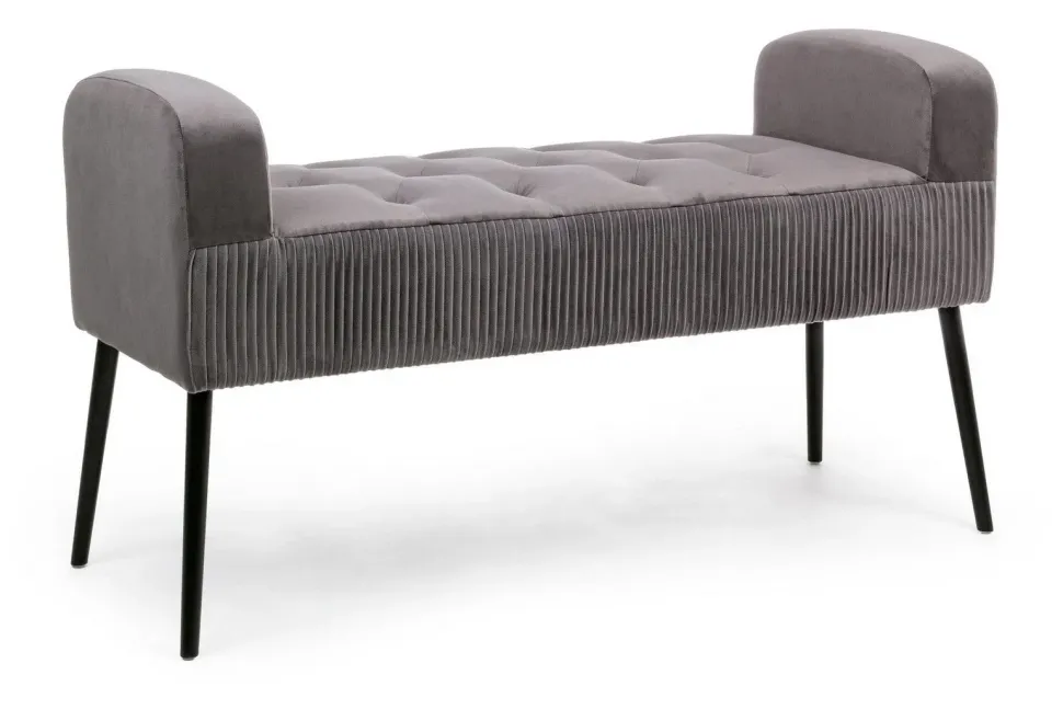 Struttura in legno di pino. Gambe in acciaio verniciato a polvere epossidica. Rivestimento in poliestere effetto velluto, densita’ imbottitura in schiuma poliuretanica 24kg/m3. Non sfoderabile. Gambe da assemblare.