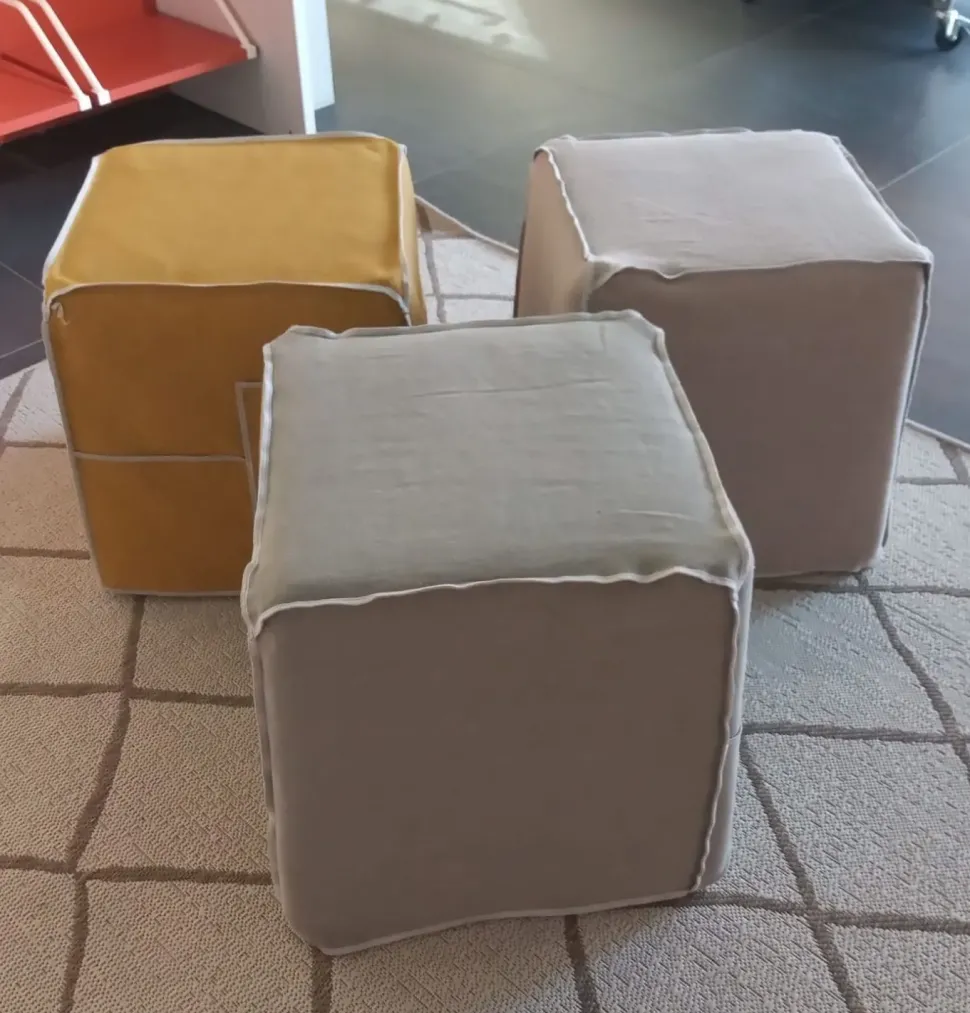 Se vuoi ultimare il soggiorno con un pouf in tessuto, sia sfoderabile che non, prediligi il modello Cookie qui disponibile e componi il living che hai sempre desiderato.