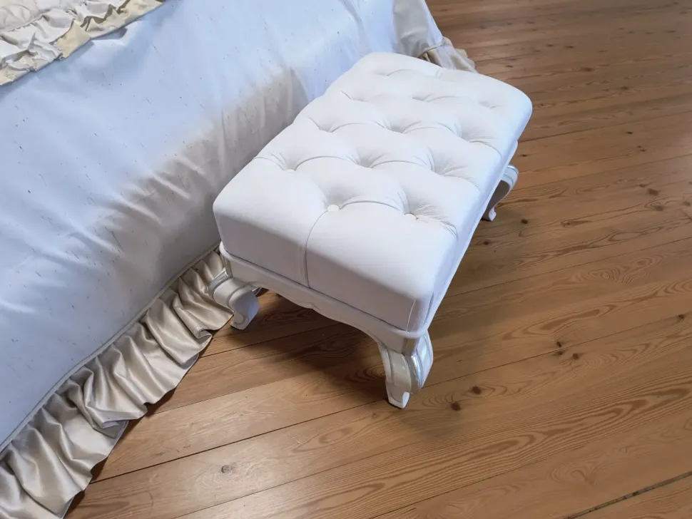 Pouf artigianale in legno e pelle con lavorazione capitonné Personalizzabile