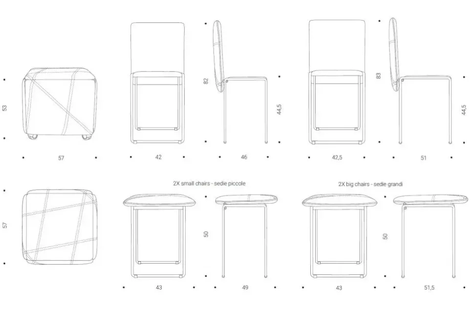 – Dimensioni: L. 57 cm H. 50 cm P. 57 cm