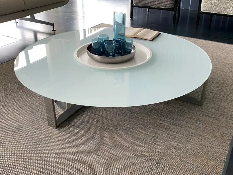 - Feg, grazie a pluriennale esperienza e passione nel settore, sceglie solo i materiali di grande pregio, o meglio quelli migliori per dare forma a la sua quasi infinita gamma di tavolini: il modello Polo in foto è realizzato in vetro.