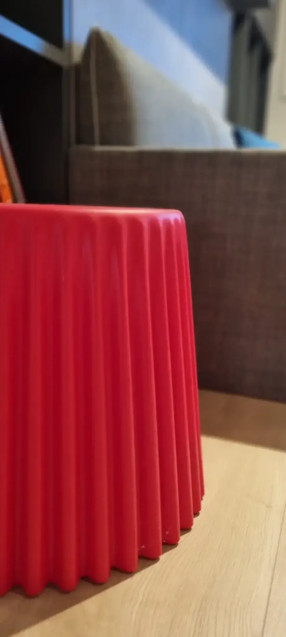 Tavolino in polipropilene rosso con effetto drappeggiato.
