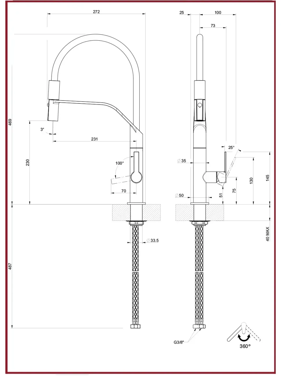 - Canna girevole a 360°: permette una grande libertà di movimento sul lavello.