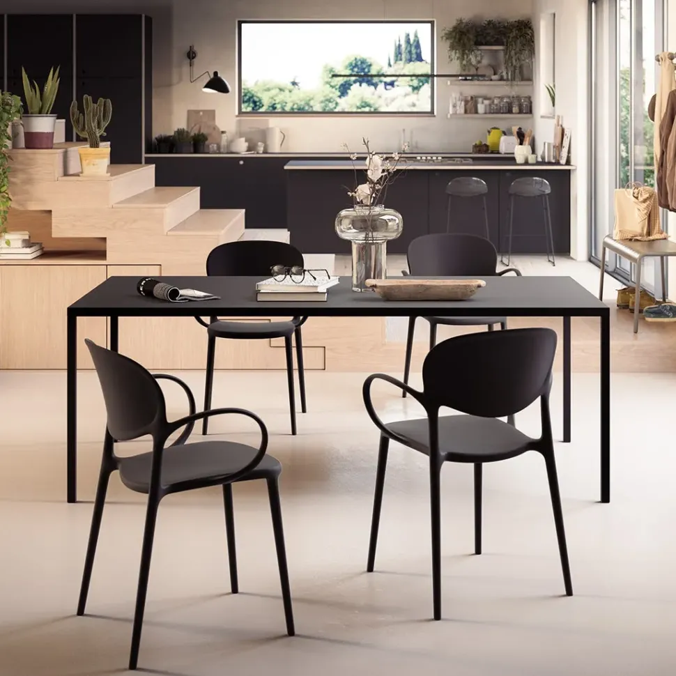 La forma del tavolo definisce fin da subito l’effetto visivo del locale e del pezzo di arredo stesso, in quanto valorizza il mood della stanza con una peculiare coerenza stilistica; il tavolo Connubia Iron qui visibile a prezzo scontato, non fa eccezione: è rettangolare e questo lo rende adeguato per connotare il valore estetico del tuo soggiorno o della tua zona cucina, nonchè per sfruttare bene forma e dimensioni delle stanze assicurandoti un piano d’appoggio sempre a disposizione.