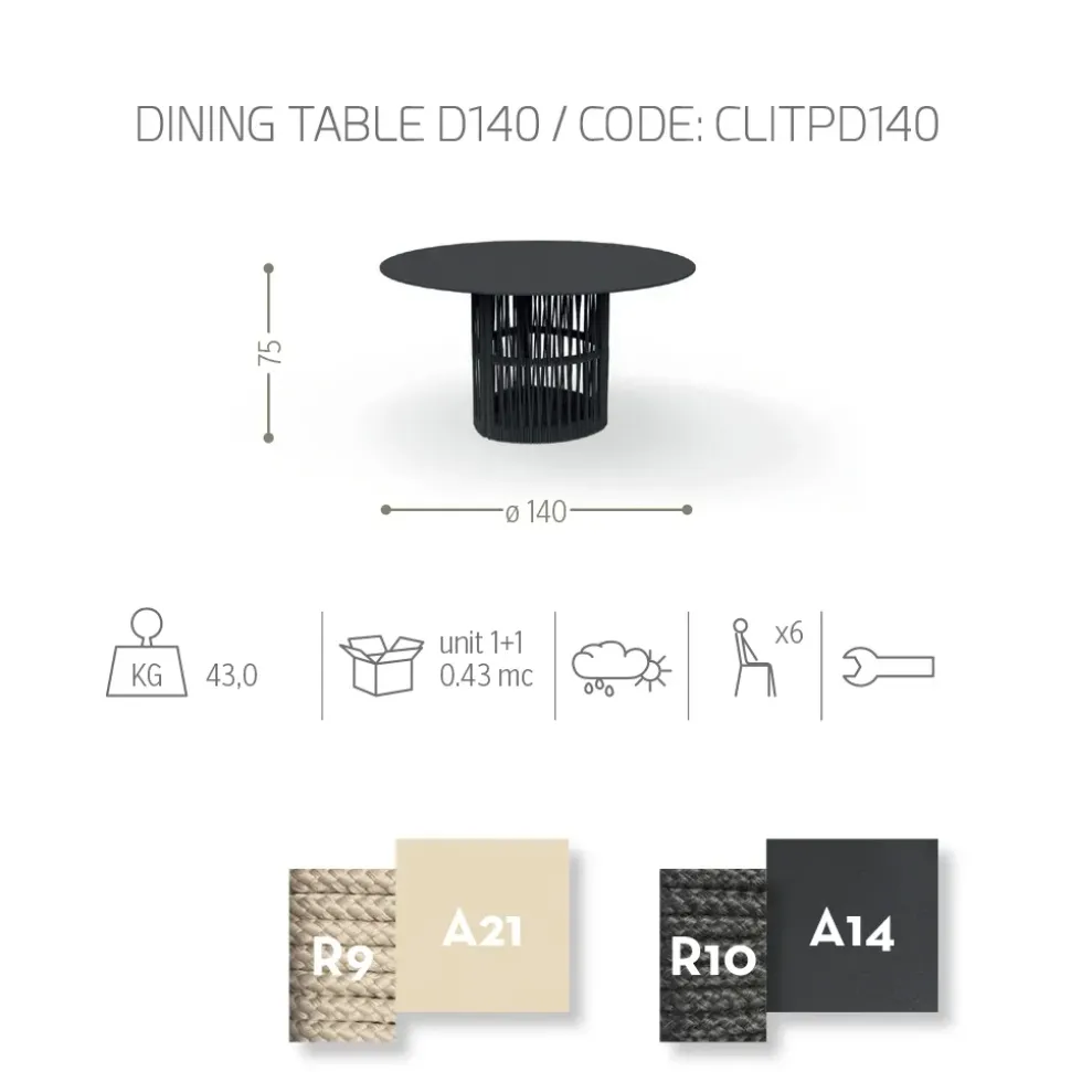 - Diametro di 140 cm: il tavolo ha un diametro di 140 cm che permette di ospitare comodamente fino a 8 persone.