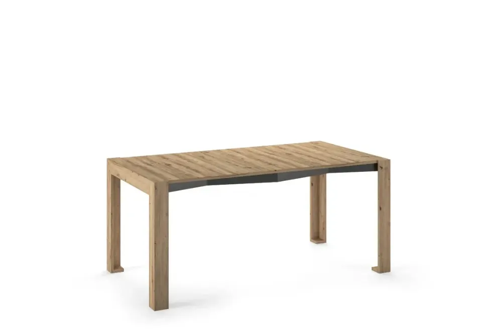 Consolle allungabile con meccanismo in alluminio. Struttura, piano e 3 allunghe (19 mm) in eco legno. Allunghe contenute nella struttura. Consolle con ingombro minimo di soli 18 cm.