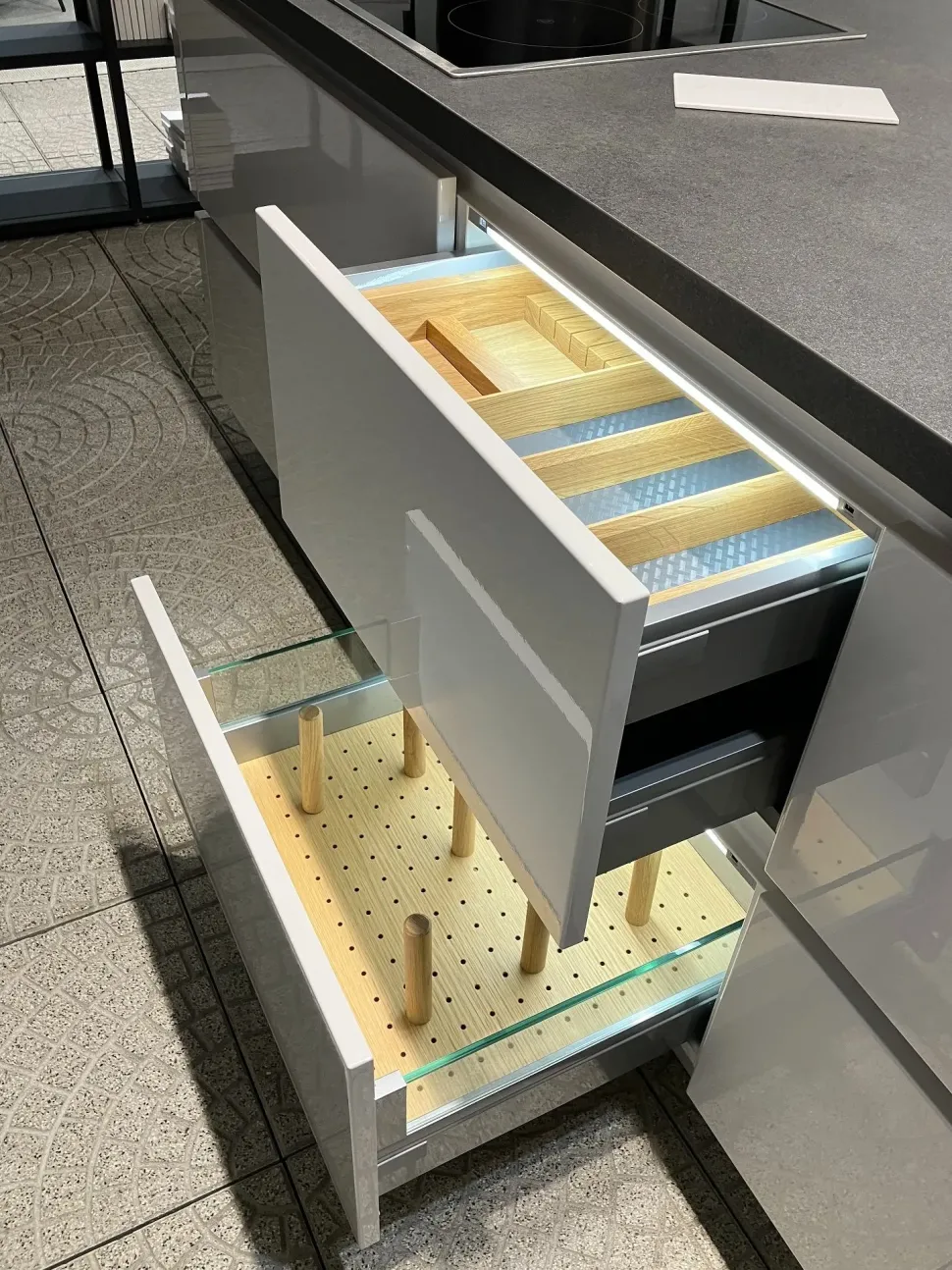 Cucina Nobilia Grigio Seta a isola in laccato lucido a soli