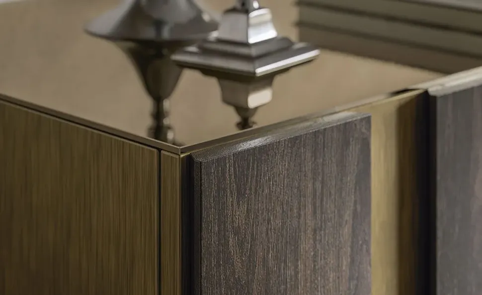 Ante in legno verniciato Oxybrass con inserti in rovere bruciato (RB).