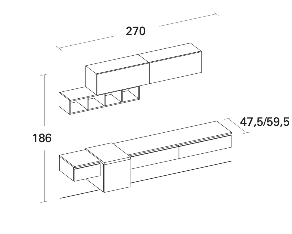 Parete attrezzata Composizione living 270 – 3 di Arrex: stile, misure e finiture