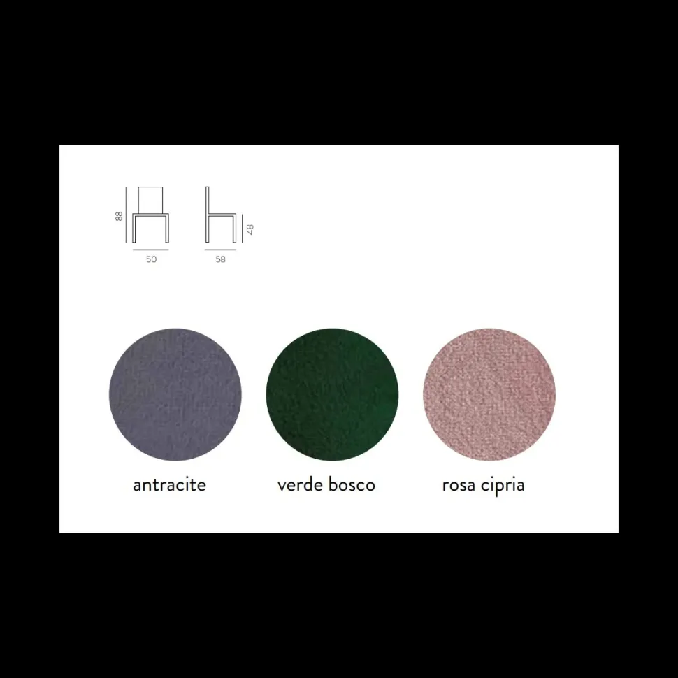 Caratterizzata da un design moderno ed essenziale Musa è una seduta comoda e confortevole.Presenta una struttura con gambe in Metallo verniciato nero, una seduta imbottita rivestita in velluto antimacchia, disponibine in diverse finiture: Antracite, Verde bosco, Rosa cipria.