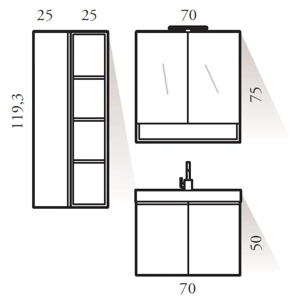 - Questa soluzione include uno specchio di classe e raffinatezza, pensato apposta per definire il valore estetico del locale e per facilitare le consuete pratiche di cura personale a cui esso è deputato.