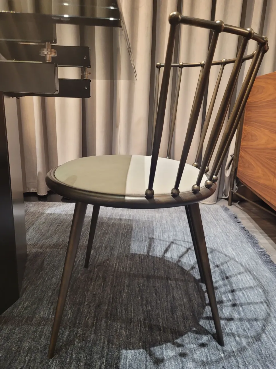 Aurora, sedia bacchettata che nasce da un’icona del design del passato, la sedia Windsor, reinterpretata in chiave attuale attraverso l’utilizzo del metallo.