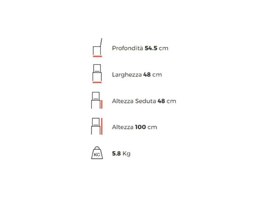 - Tipologia sedia: senza braccioli