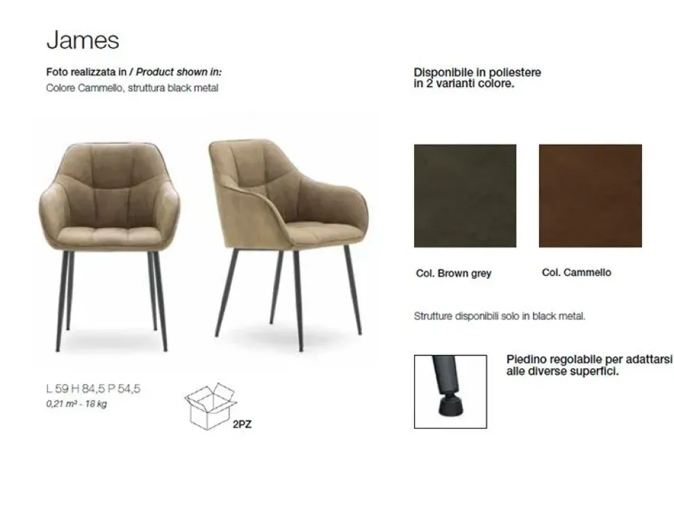 Realizzata in morbido tessuto e impreziosita dalle cuciture quadrate, James è più di una sedia è un invito a godersi la vita.