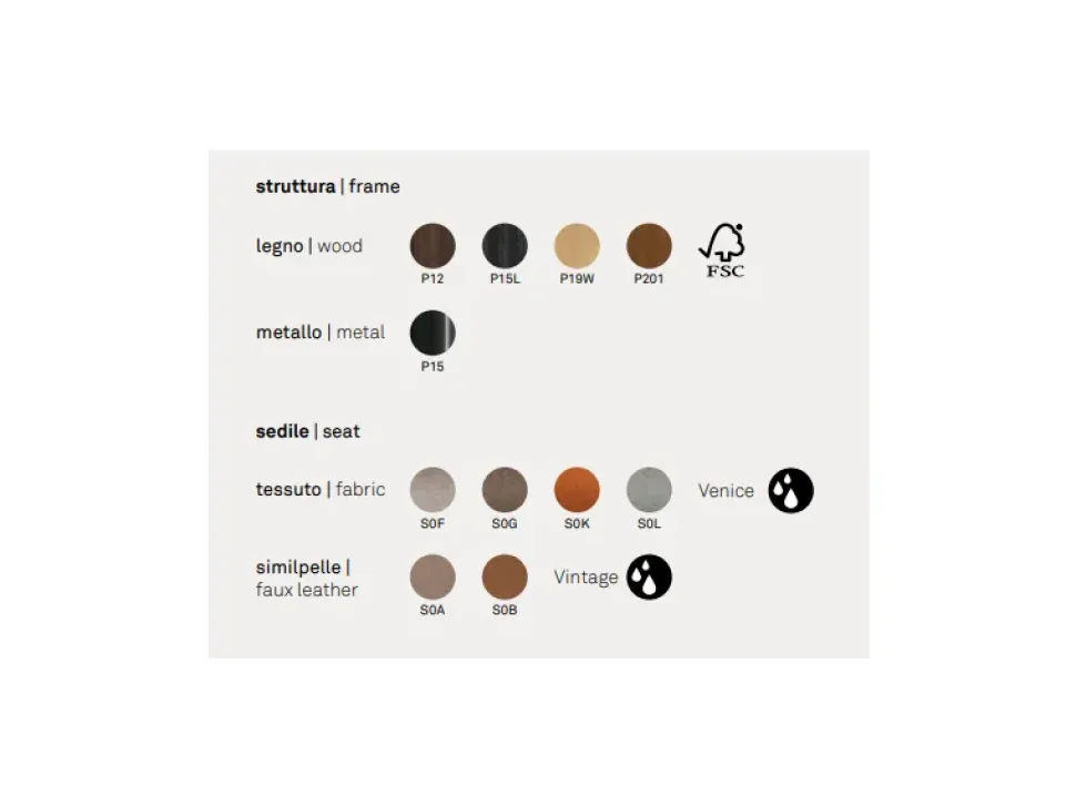 - Tipologia sedia: senza braccioli