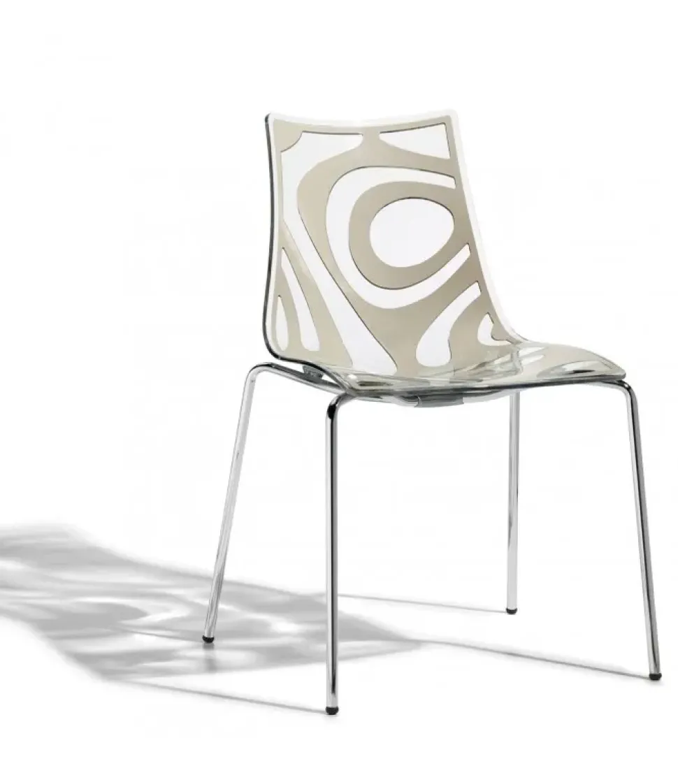 La sedia Scab modello Wave è in finitura trasparente e sabbia.
