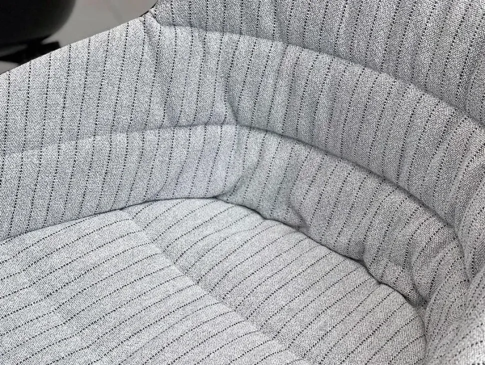 La base, 4 gambe in acciaio sostenute da un perno centrale, accompagnano la scocca che accoglie una imbottitura anteriore. Particolare attenzione è stata dedicata all’ergonomia e all’imbottitura della seduta per garantire un comfort avvolgente.