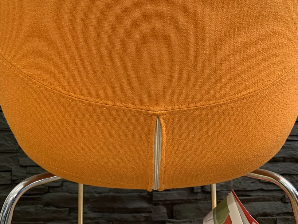 Struttura in acciaio cromato, seduta in nylon rivestito di tessuto colore arancio (f.p.).