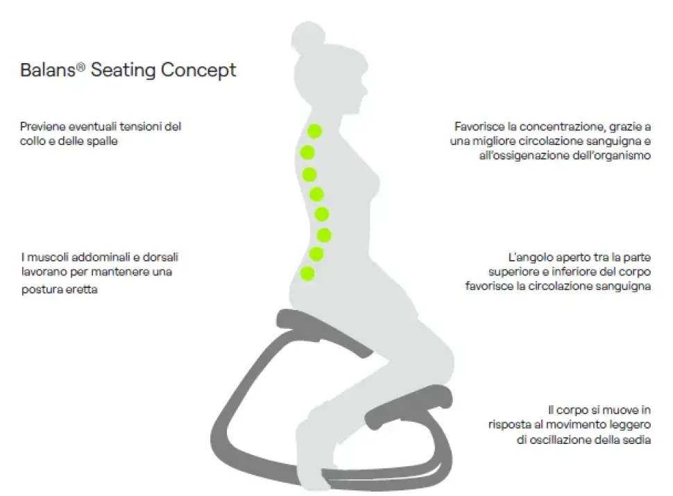 Il concetto di base è molto semplice: le sedie con sistema di seduta Balans rispettano la tendenza naturale del corpo a muoversi e lo mantengono nella sua postura più naturale.