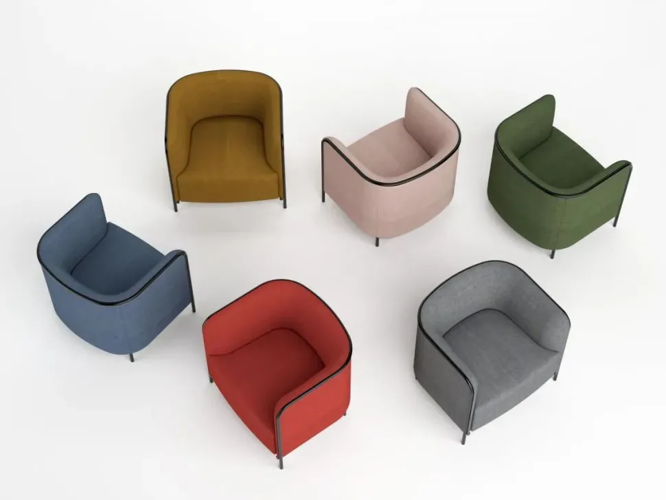 Comodità ed eleganza sono caratteristiche di questa poltroncina dalle forme sinuose. Il suo design moderno la rende ideale per il soggiorno, o per arredi in sale di accoglienza e di attesa.