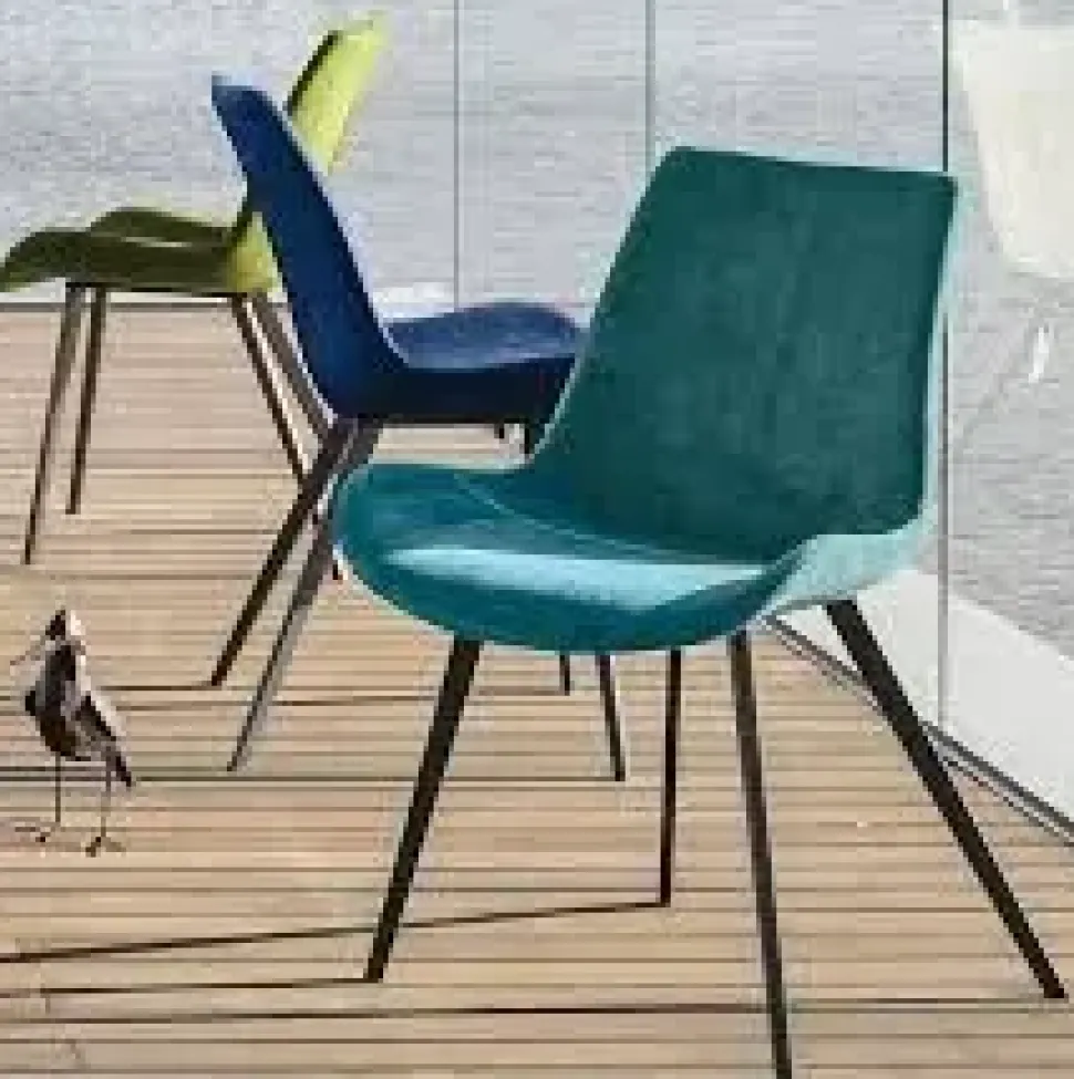 Sedia con struttura in metallo verniciato e seduta in morbida microfibra effetto velluto o Soft-Touch Vintage.