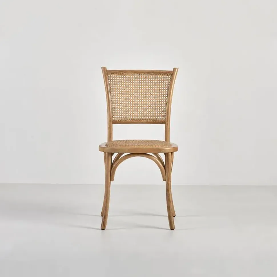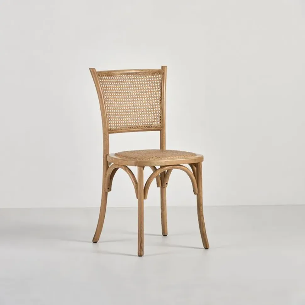 Sedia in legno massello di Rovere finitura naturale, seduta in cannettato intrecciato e schienale paglia di Vienna. Lavorata a mano.