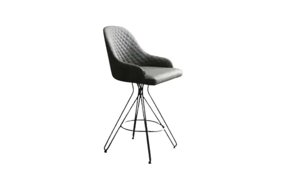 Sgabello caratterizzato da una struttura base in filo metallico e una seduta imbottita in pelle e velluto