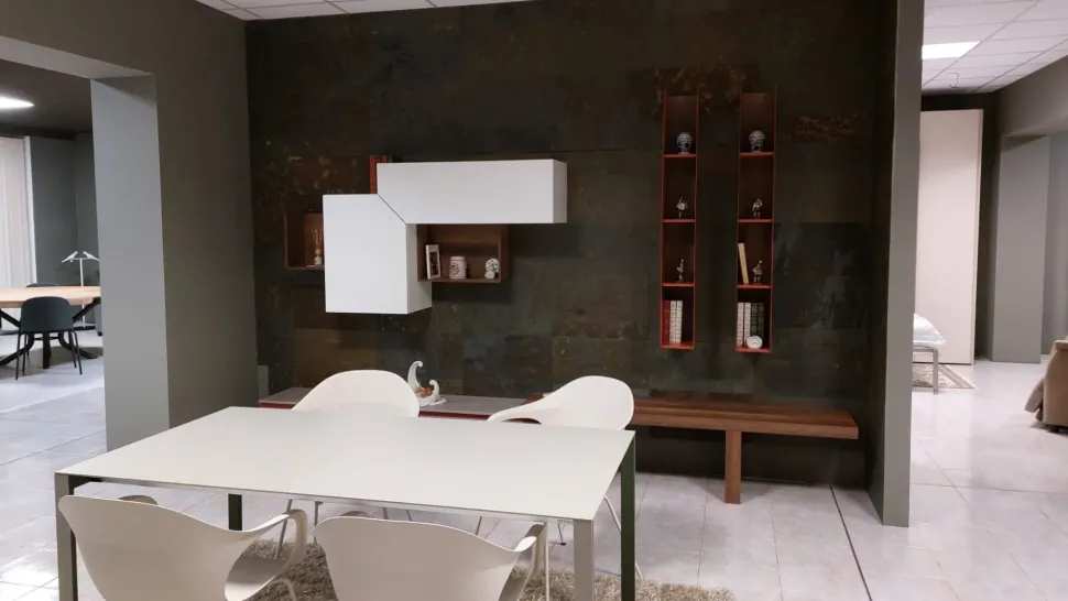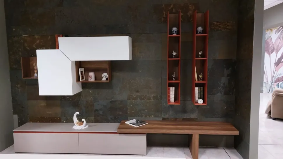 I mobili e oggetti accessori del living non devono mai essere di intralcio, per cui è tanto importante valutare anche le misure della composizione scelta: il modello presente in foto ha una larghezza che va da 301 a 350 cm.