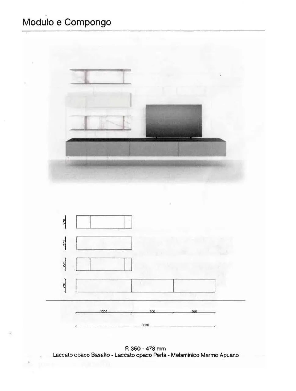 Dimensioni composizione: Larghezza 320cm, Altezza 185cm, Profondità 48cm. Spedizione compresa nel prezzo in tutta Italia 40-50 giorni lavorativi. La composizione ha un prezzo base di euro 1.700,00. Personalizzando con materiali legno e laccati come in foto l’offerta è di euro 2.600,00. Per maggiori informazioni e preventivi contattaci via mail.