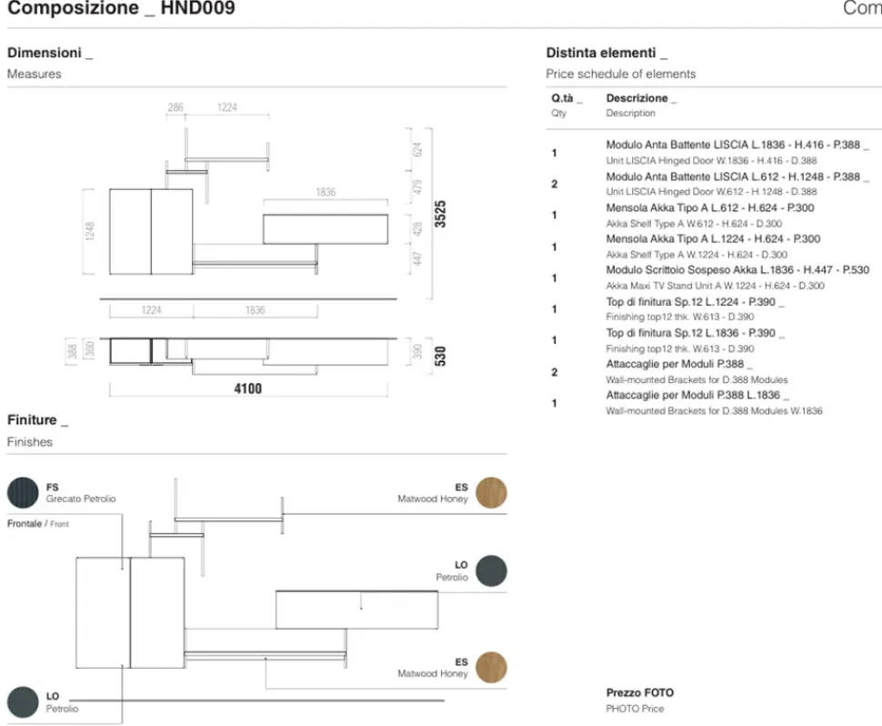 prezzo base con finiture ES essenza e CE colore eco 1.570 In questa offerta proponiamo la composizione completa modello Rapallo, studiata per completare un soggiorno design assicurandoti tutto lo spazio di cui hai bisogno.