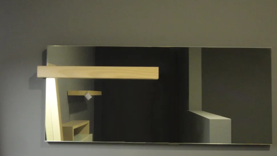 Il particolare della specchiera è il suo inserto in rovere naturale .