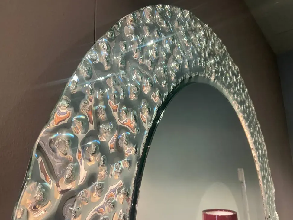 Vetro fuso a gran fuoco da 8 mm retroargentato con decoro artistico a rilievo