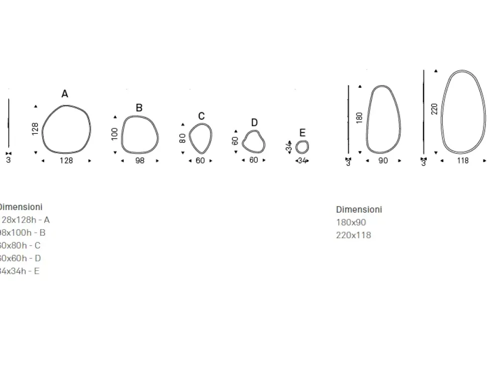 Dimensioni: 1x128x128h – 1x 98x100h – 1x 60x80h – 1x 60x60h – 2x 34x34h cm