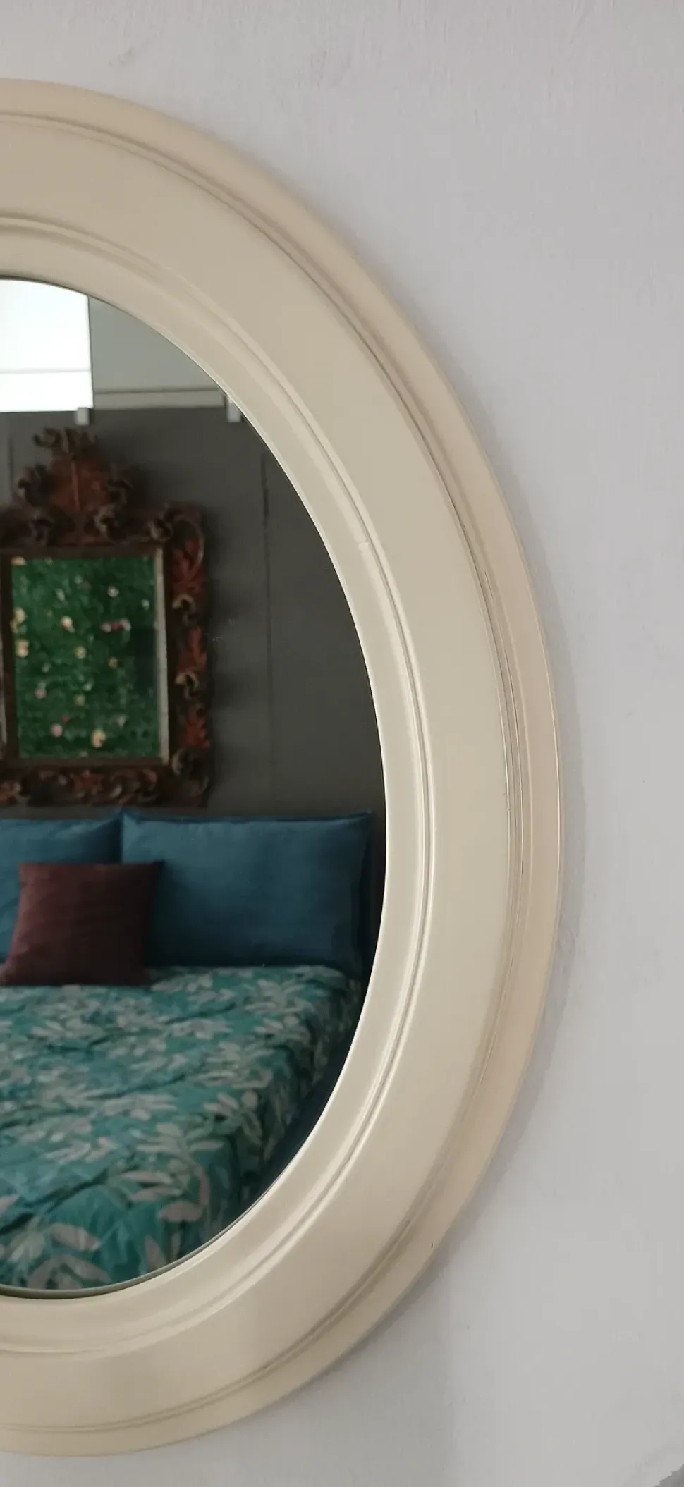 Specchiera ovale laccata bianca dimensione cm. 80 x 64 possibilità di orientarla in verticale o orizzontale .Disponibili altre specchiera di varie misure e finiture contattateci per un preventivo. Pronta consegna.