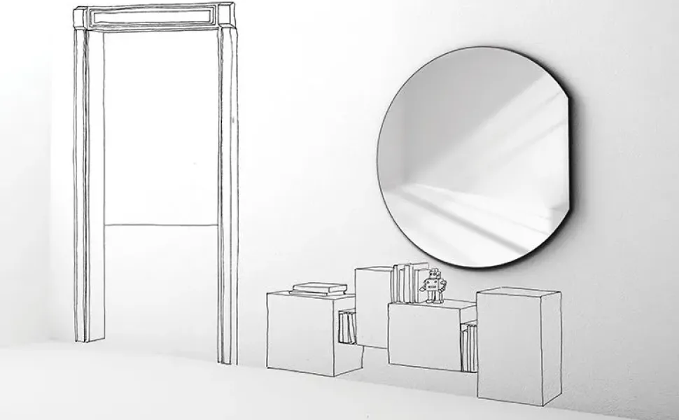Se desideri creare peculiari atmosfere in case con uno specchio design, il modello Sunset mostrato in foto fa al caso tuo.