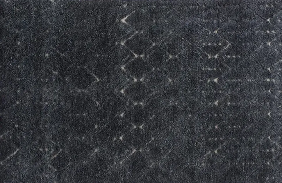 Tappeto realizzato con filati di lana neozelandese tie-dyed, color grigio antracite. Disegnato da Sandra Figuerola per Gan. Dimensioni 200x300cm.
