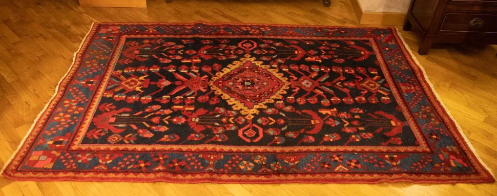 - Posizionare dei tappeti tra i mobili di casa, significa creare originali composizioni di forma e colore, impreziosire spazi anonimi o creare un contrasto di classe con i restanti mobili. Per fare ciò, tuttavia, è imprescindibile definire una certa coerenza di stile: i tappeti, di fatto, devono essere abbinati ai mobili, alle pavimentazioni, agli altri accessori e anche al tipo di ambiente che impreziosiscono. Prima di sceglierne uno, quindi, sarà utile appurare a quale linea stilistica riferirti: se vuoi impreziosire un ambiente di spiccato gusto classico, allora il tappeto Hamadan mostrato in foto sarà la scelta ideale per te.