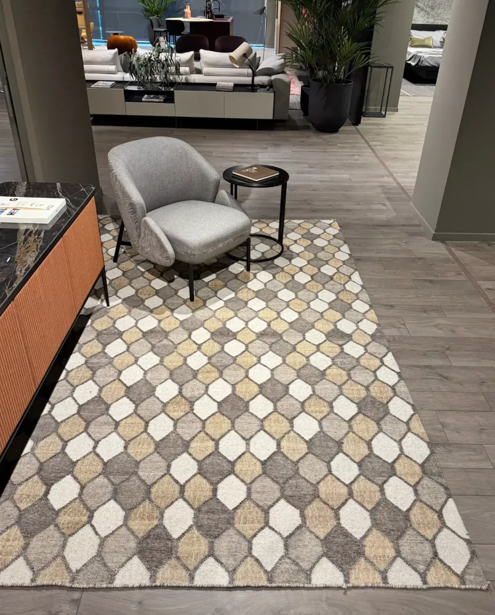 Tappeto rettangolare Diamonds di Kuatro scontato a 628,00 euro. Tappeto dalla fantasia geometrica sui toni naturali, caldi, della terra. Tappeto fatto a mano in lana e cotone . Il nome del tappeto ricorda dei diamanti grezzi che creano un effetto ottico tridimensionale. La combinazione di materiali di alta qualità e la meticolosa lavorazione artigianale, garantiscono non solo un aspetto eccezionale ma anche una sensazione di lusso sotto i piedi. Tappeto moderno che si adatta ad ogni stile di casa e ad ogni ambiente. Misure del tappeto: larghezza 300, profondità 200 centimetri. Prodotto che potrete vedere all’interno della nostra esposizione a Giussano, a pochi chilometri di distanza da Milano. Per qualsiasi informazione non esitate a contattarci.