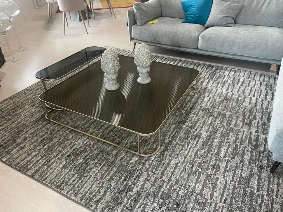 - Il tappeto qui presente è tramato e annodato in fibra sintetica, uno dei materiali di prima scelta che si prestano a creare ordito, trama e nodi dei tappeti con un elevato contenuto estetico e assicurando, al contempo, resistenza negli anni e grande morbidezza. Le proposte d’arredo della firma sono sempre di ottima fattura, studiate fin nel dettaglio sia per il design, sia per ergonomia e sicurezza.