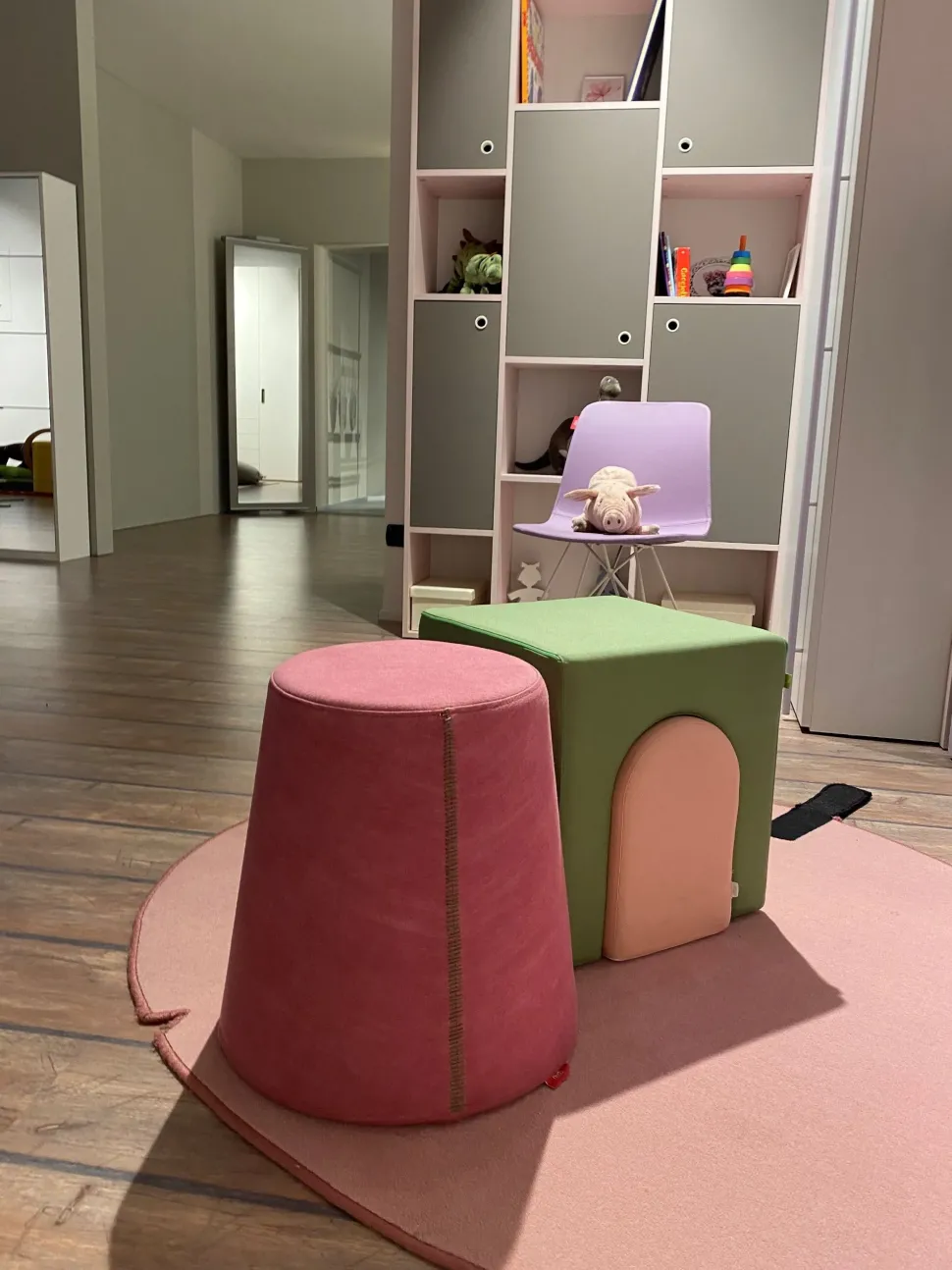 Tappeto modello Apple di Nidi in finitura rosa. Le dimensioni del tappetto sono diametro 130 cm.
