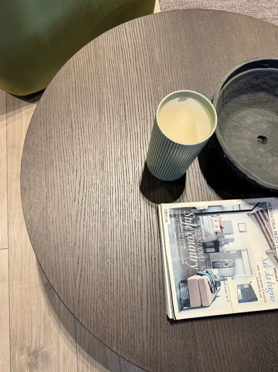 Tavolino Moca di Alf DaFrè in offerta a 294,00 euro. Tavolino rotondo con struttura in metallo verniciato moka shine e piano in essenza rovere carbone. Tavolino moderno diametro 90, altezza 37 centimetri. Prodotto che potrete vedere all’interno della nostra esposizione a Giussano, a pochi chilometri da Milano. Per qualsiasi infdormazione non esitate a contattarci.