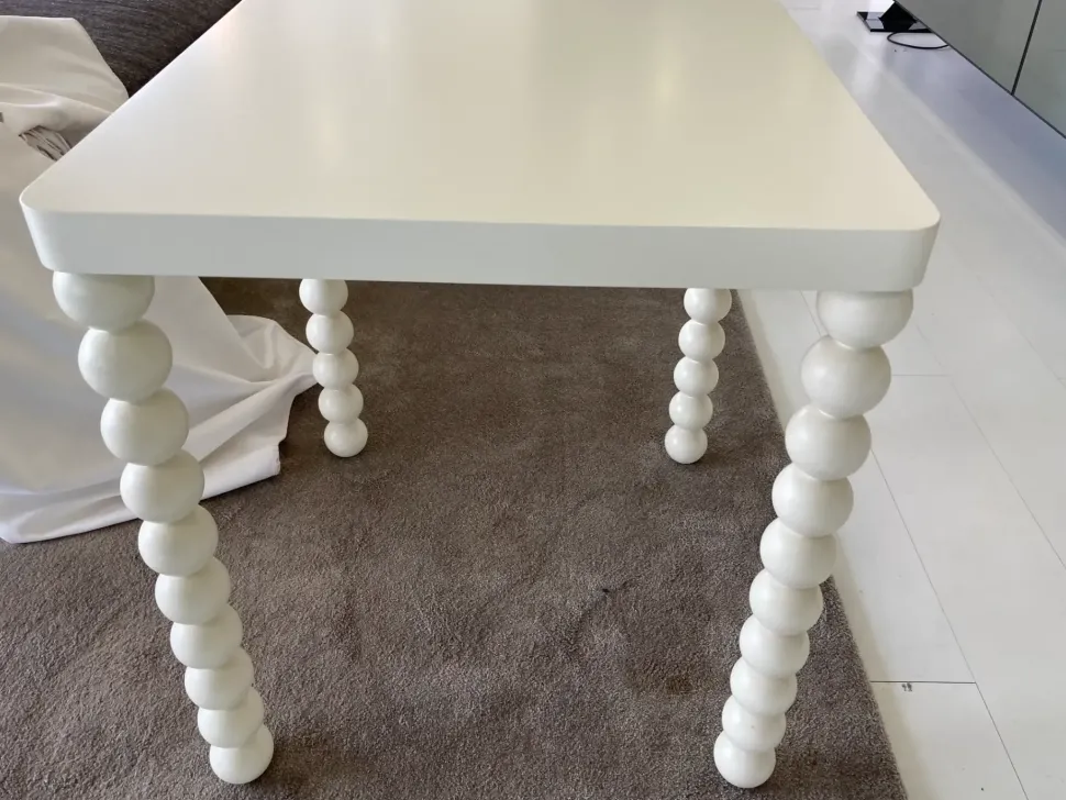 Tavolino rivestito in tessuto sfoderabile,con struttura laccato opaco colore avorio.