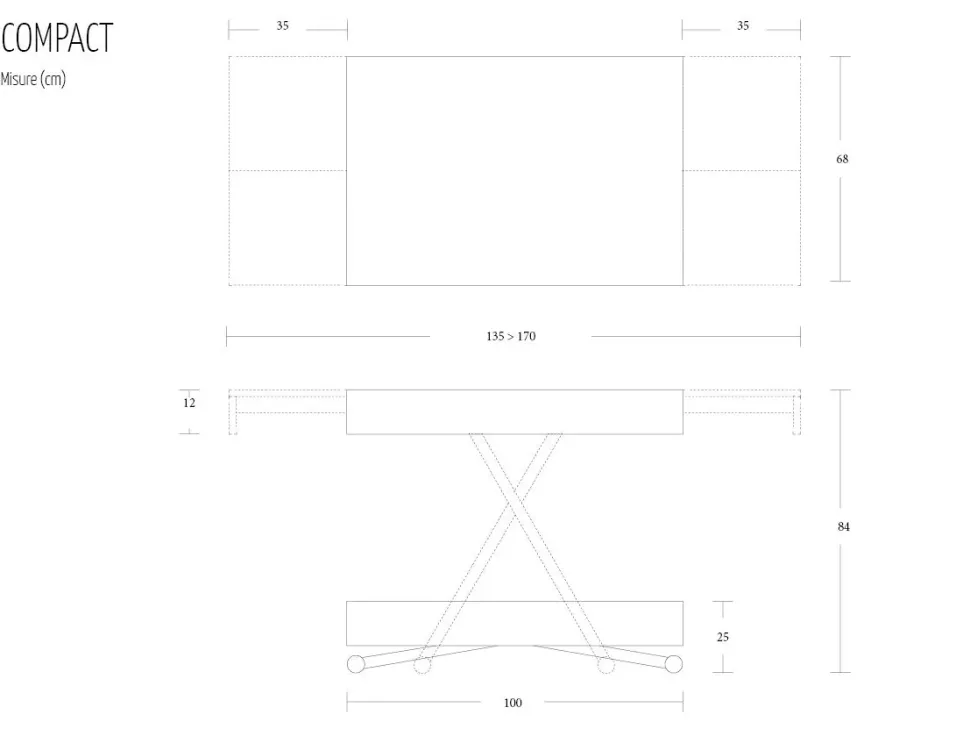 Dimensioni: 100×68 cm estensibile a 170×68 cm.