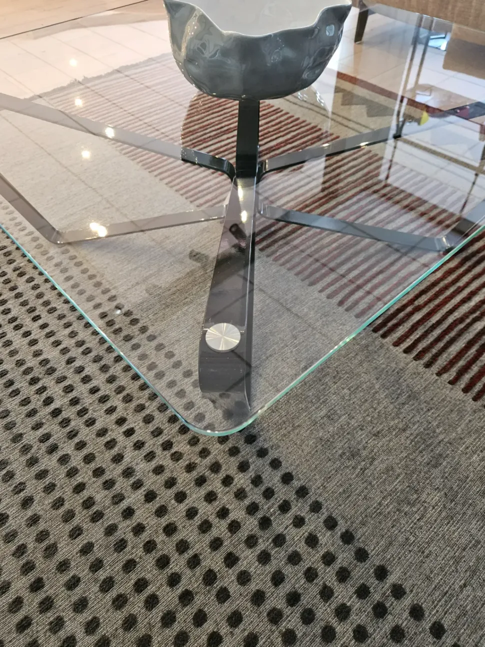 - Il piano è quadrato, in Cristallo Trasparente Extrachiaro C157.