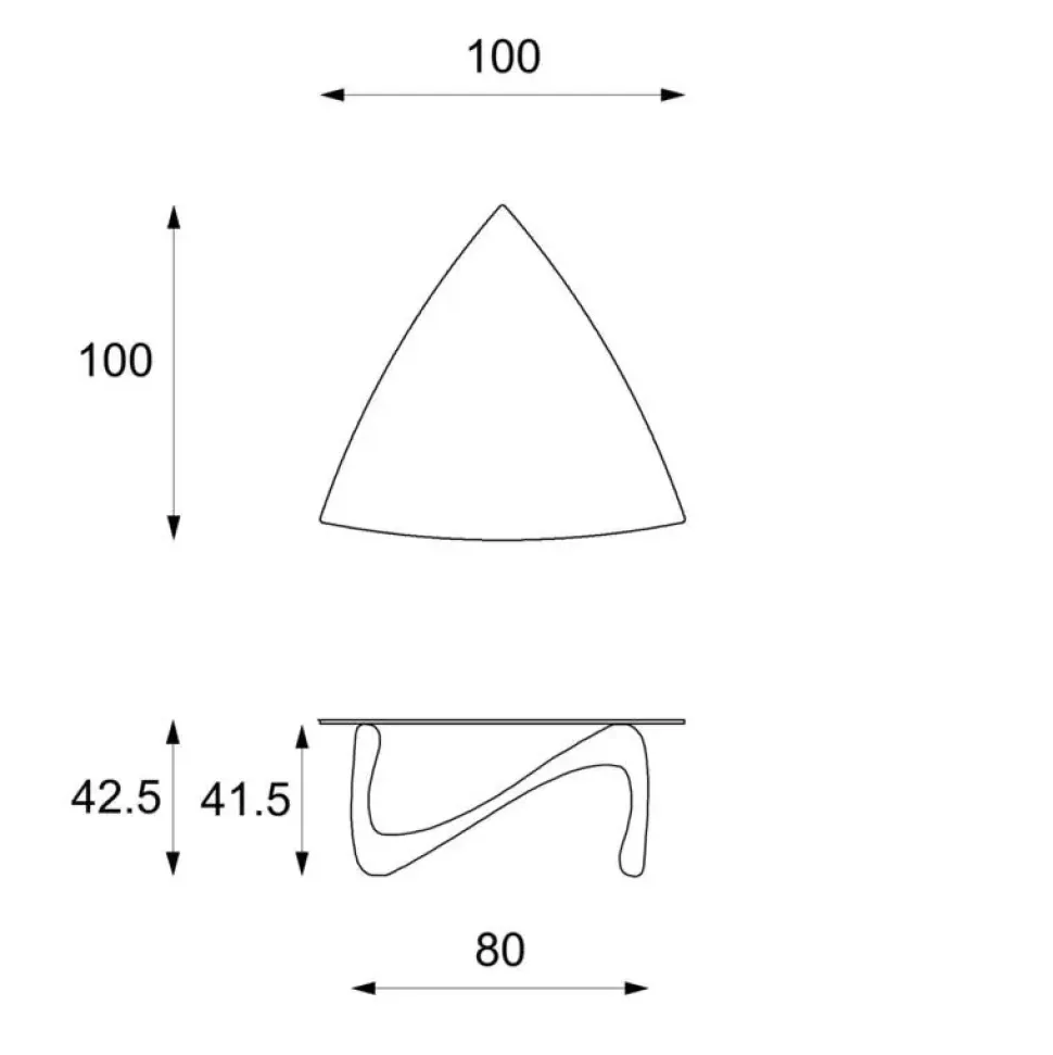 Il Top è in vetro temperato 1 cm filo lucido triangolare arrotondato trasparente