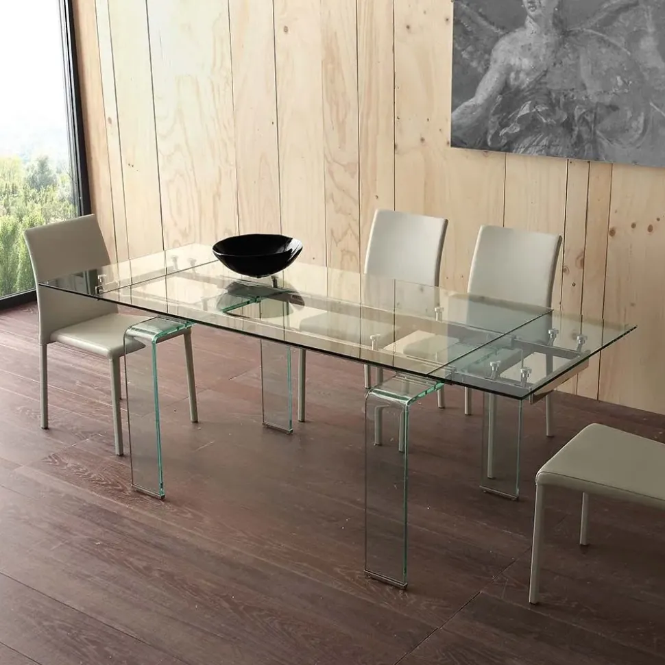 - 1. Il tavolo La Seggiola Modello 676 è un tavolo allungabile di forma rettangolare con un piano in vetro di alta qualità e un basamento a quattro gambe.