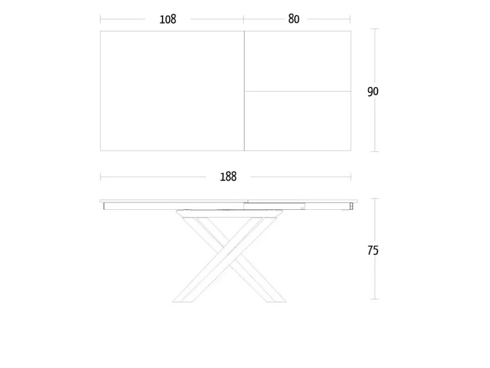 Dimensioni: 108×90 cm estensibile a 188 cm.